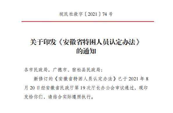 名稱: 關于印發《安徽省特困人員認定辦法》 的通知 文號: