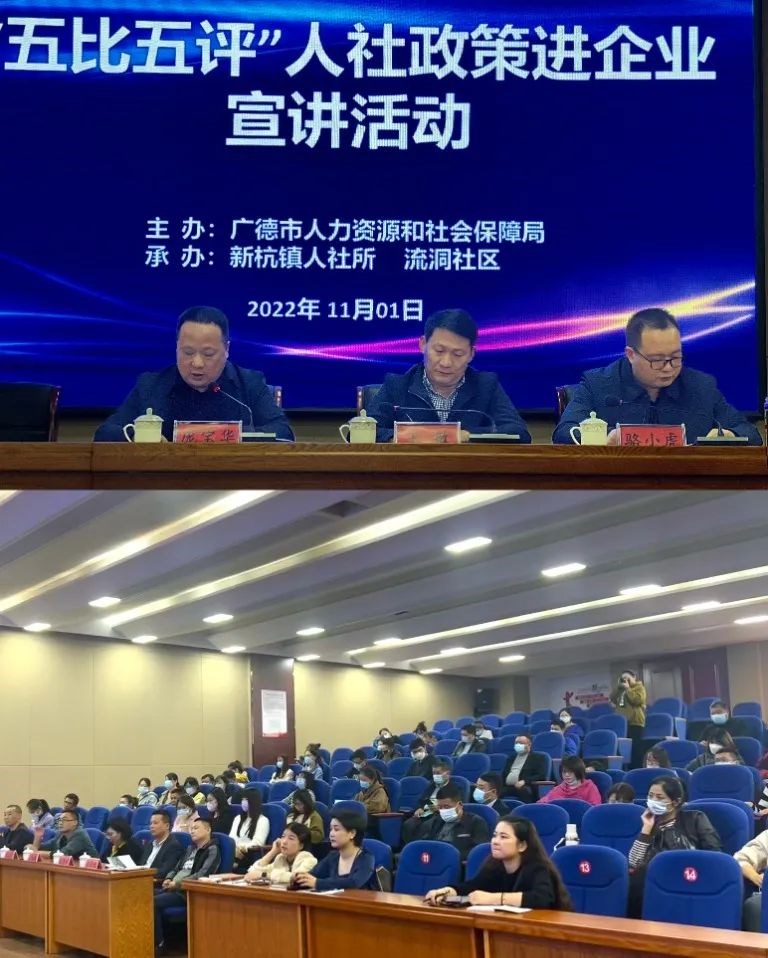 為規范企業用工,擴大“人社政策”知曉度和覆蓋面,進一步優化營商環境,11月1日下午,市人社局組隊到新杭鎮開展“五評五比”人社政策進企業宣講活動。園區內、外65家規模企業78位代表參加活動。