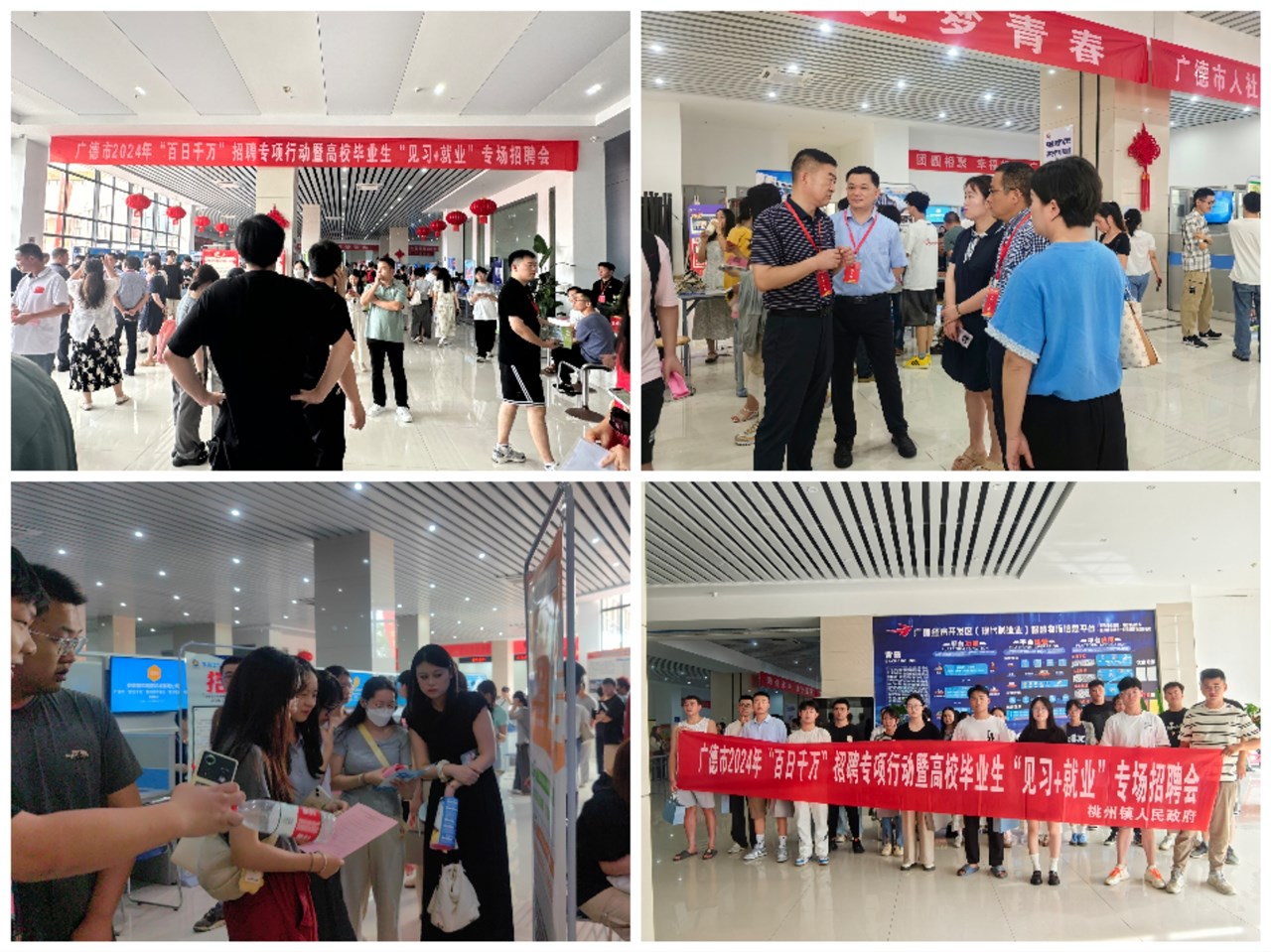2024年7月6日上午,桃州鎮人社所組織各社區村高校畢業生參加廣德市2024年“百日千萬”招聘專項行動暨高校畢業生“見習+就業“專場招聘會,鎮分管領導沈咪咪到現場指導工作,蒯浩寧市長及人社局領導提出工作要求,要切實做好高校畢業生就業工作。