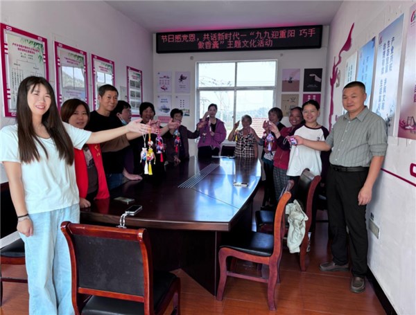 宋陳村為迎接重陽佳節的到來,組織村民們聚在一起,開展了一場巧手制香囊活動。一雙雙巧手穿梭于五彩絲線之間,不僅編織出一個個寓意吉祥的香囊,更將對長輩的敬愛與祝福一針一線地縫進了這份特別的禮物之中。