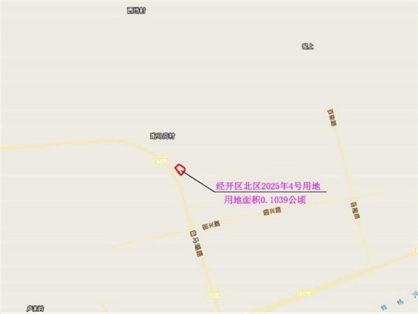 經(jīng)開區(qū)北區(qū)2025年4號用地擬征收邱村鎮(zhèn)趙村村集體所有土地0.1039公頃(1.5585畝),其中:農(nóng)用地0.1039公頃(1.5585畝),含耕地0公頃(0畝)。