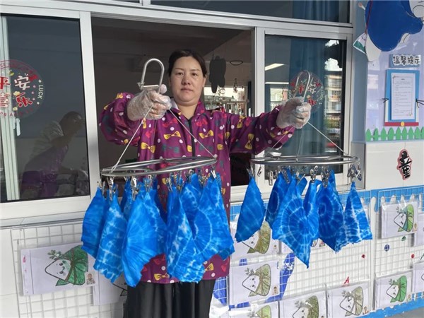 小手將白布或捆扎或夾緊,浸入彩色染液中。解開束縛的瞬間,獨一無二、暈染自然的圖案躍然布上!項宇帆媽媽帶著孩子們體驗了一次神奇的扎染之旅,每一次拆解都如同開啟驚喜盲盒,孩子們在驚喜中體驗著約束與自由創造的奇妙。