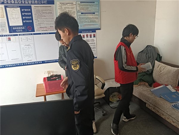 走進(jìn)食品生產(chǎn)企業(yè)檢查食品安全,并檢查先關(guān)臺(tái)賬查閱資料。