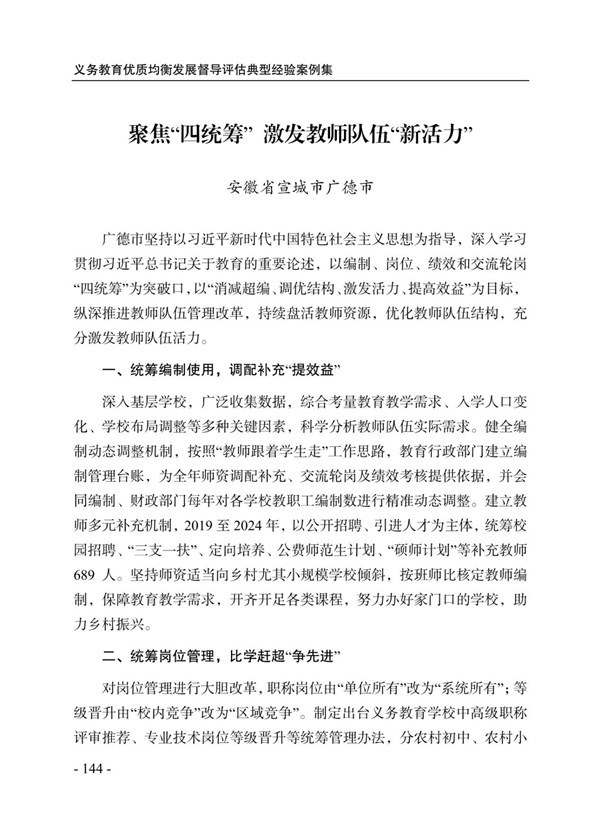 廣德市《聚焦“四統籌”激發教師隊伍“新活力”》入選