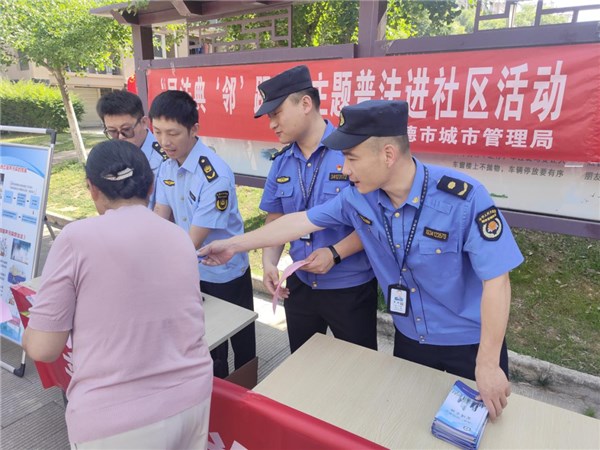 5月14日,廣德市城管局組織執法人員走進廣德市清溪社區,開展“民法典‘鄰’距離”與“打擊電信網絡詐騙”宣傳活動。