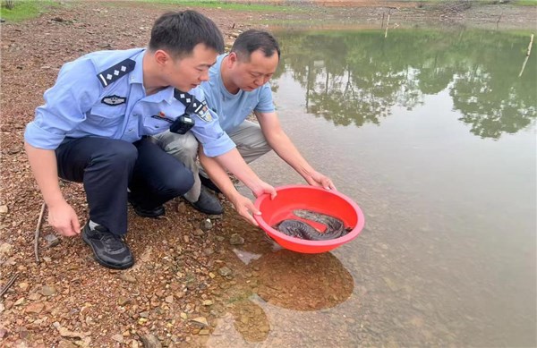 516日,新杭林業(yè)站和派出所工作人員攜手將一條野生娃娃魚放生回歸大自然。