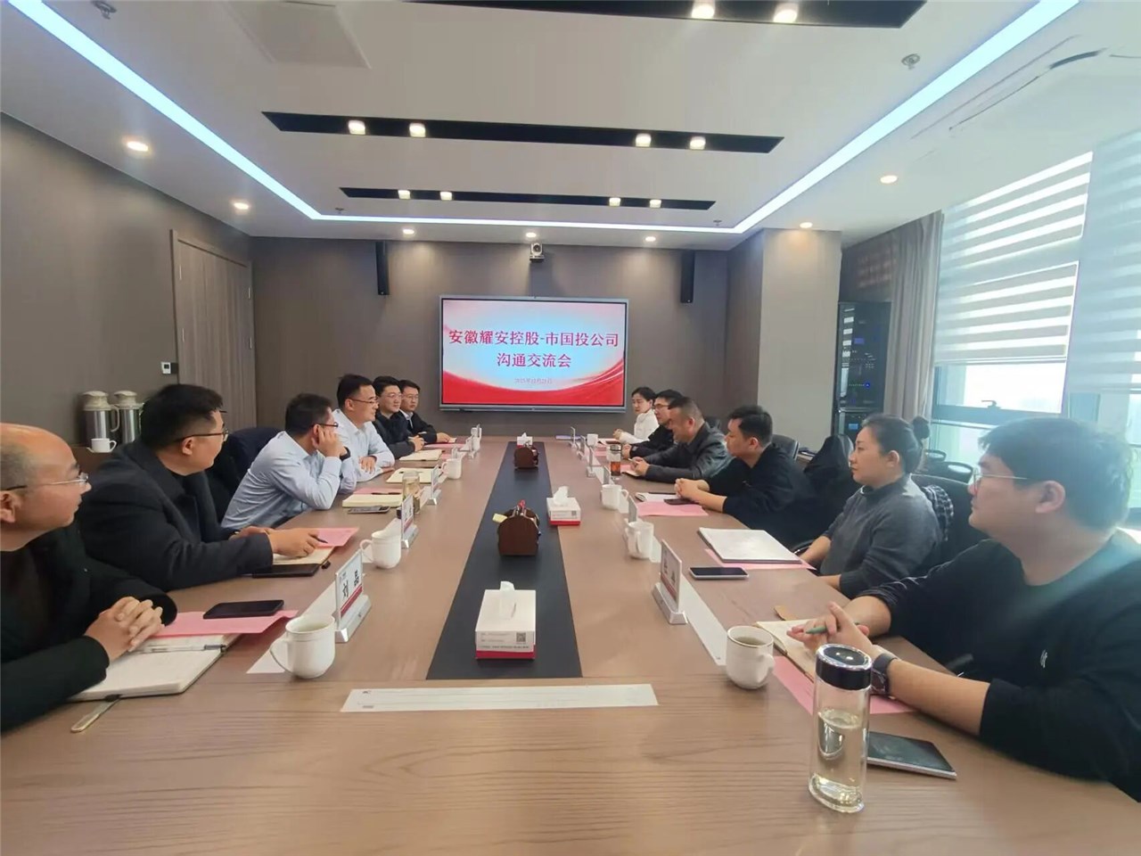 2025年12月29日下午,安徽耀安控股集團有限公司總經理衛楊一行來訪,并座談交流。市國投公司主要負責同志、分管同志及相關人員參會。