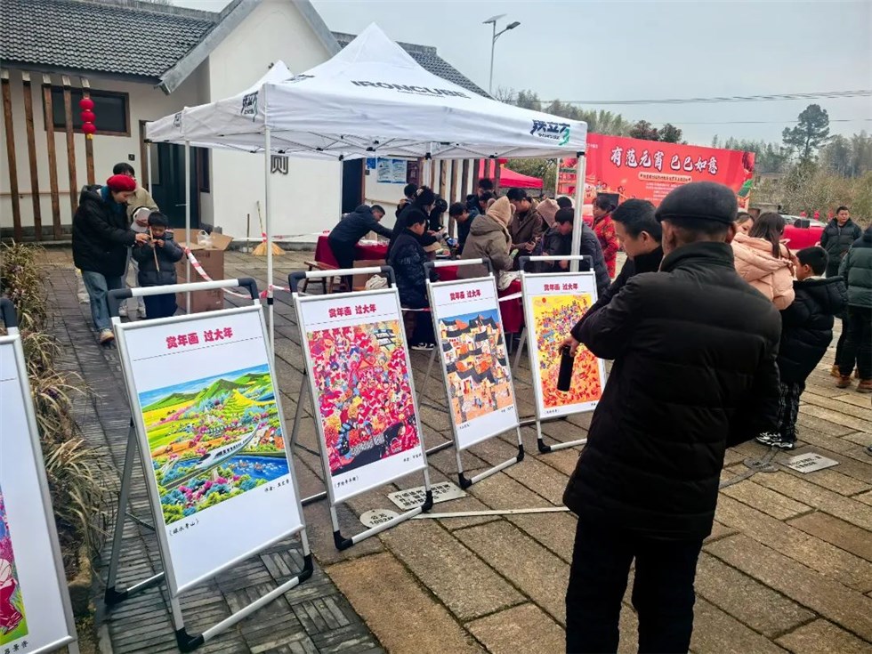 活動另一側,希文雅集的年畫展區人頭攢動。那一幅幅精美的年畫,就像一個個時光的寶盒,打開就能看到傳統民俗文化的絢麗畫卷。大家站在年畫前,或低聲交流,或靜靜欣賞。一位老者對著身邊的孩子說:“看這年畫,這可是咱們老祖宗留下來的寶貝,有著滿滿的福氣呢?!焙⒆雍闷娴乇牬笱劬枺骸盃敔?,這畫里都有什么故事呀?”老者便開始耐心地講解起來。