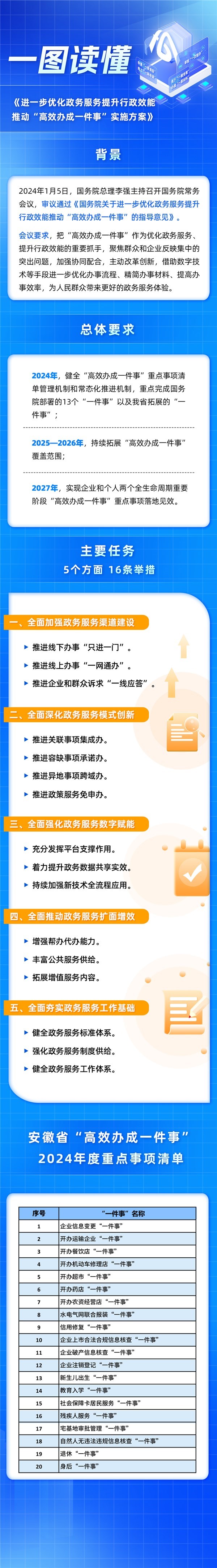 【圖片解讀】《安徽省人民政府關于印發進一步優化政務服務提升行政效能推動“高效辦成一件事”實施方案的通知》