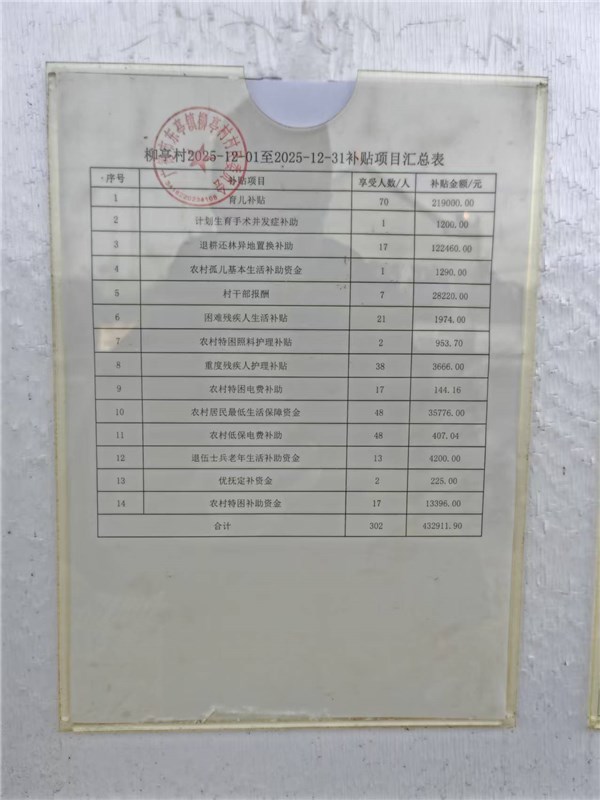 名稱: 東亭鎮柳亭村2025年12月惠民惠農資金發放情況 文號: