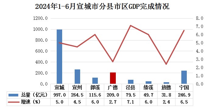 1.GDP。1-6月全市實現生產總值209.0億元,按可比價格計算,比上年同期增長2.7%。分產業看,第一產業增加值9.0億元,同比下降3.7%;第二產業增加值100.5億元,增長2.1%;第三產業增加值99.5億元,增長4.0%。
