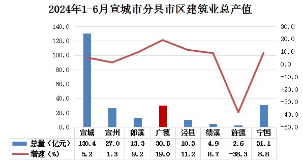 4.建筑業。1-6月,全市95家資質內建筑業企業完成建筑業總產值30.5億元,同比增長19.0%。